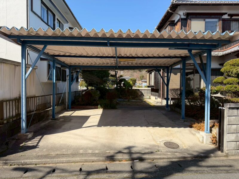 ブルーのカーポートが、さりげなくいいアクセント。この家はきっと、