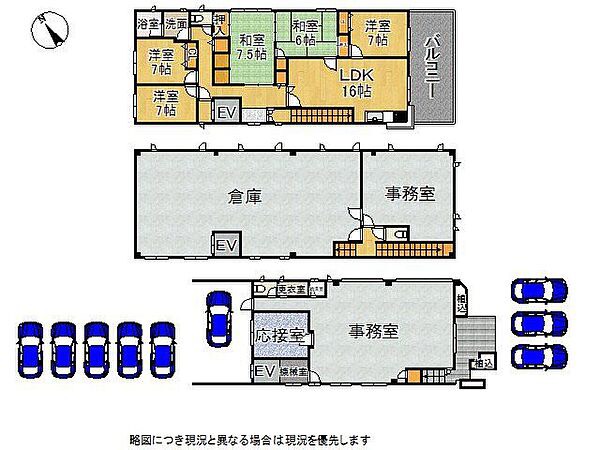 事務所、倉庫、住居がひとつにまとまった、