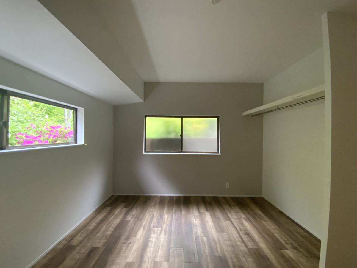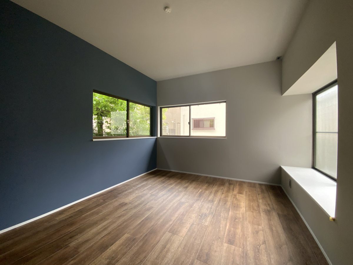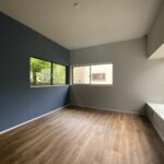 LDKの大きな窓からは、庭の緑が広がり、室内にたっぷりの自然光が差し込みます。